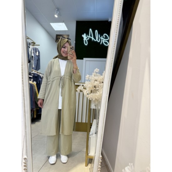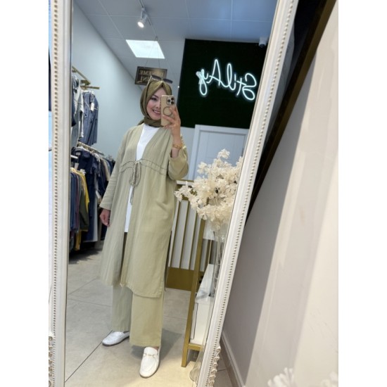 SÜS DİKİŞ DETAYLI BAĞCIKLI TAKIM SOFT YEŞİL