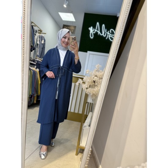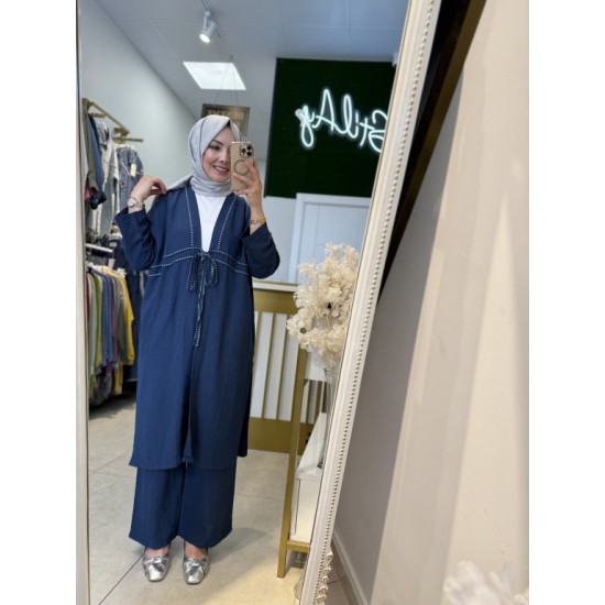 SÜS DİKİŞ DETAYLI BAĞCIKLI TAKIM LACİVERT