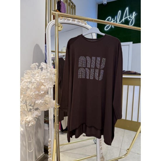MİU MİU TAŞLI ASİMETRİK TUNİK KAHVE