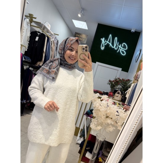 Yumoş dokulu kendinden simli özel iplerden üretilmiştir.