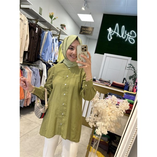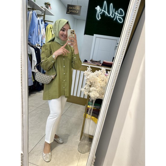 , pamuk vual gömlek haki