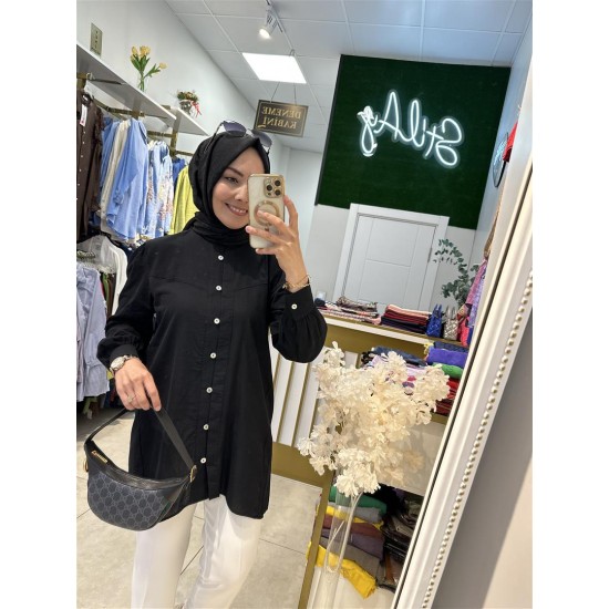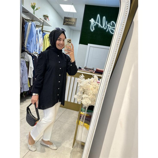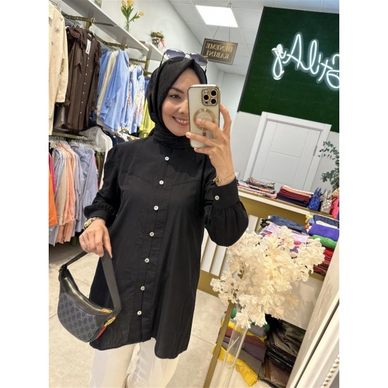 , pamuk vual gömlek siyah