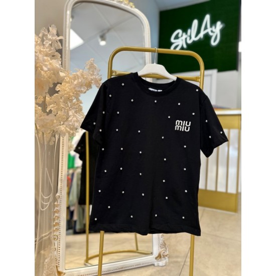 MİU MİU TAŞLI TİŞÖRT SİYAH