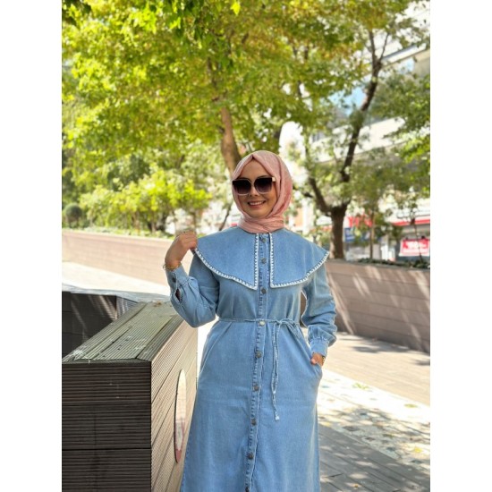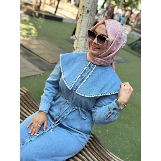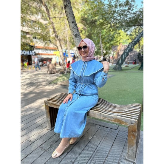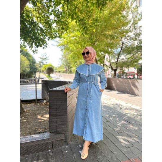 BEBE YAKA KOT ELBİSE AÇIK MAVİ 1512