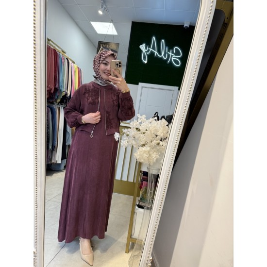 2 parçadan oluşmaktadır ,ceket ve sıfır kol elbise olarak.