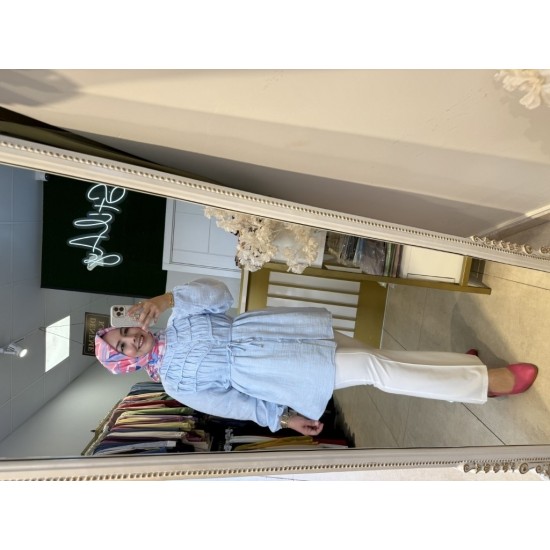 NAKIŞ DETAYLI MÜSLİN TUNİK BEBE MAVİSİ