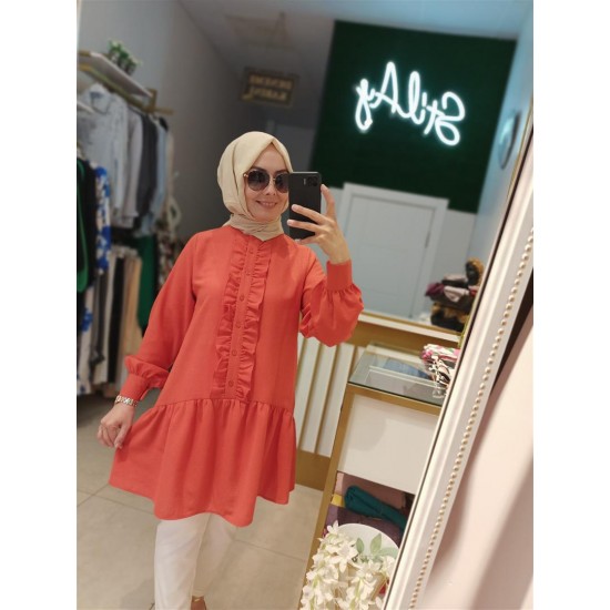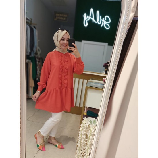 DORA PAMUK KETEN GÖMLEK TURUNCU