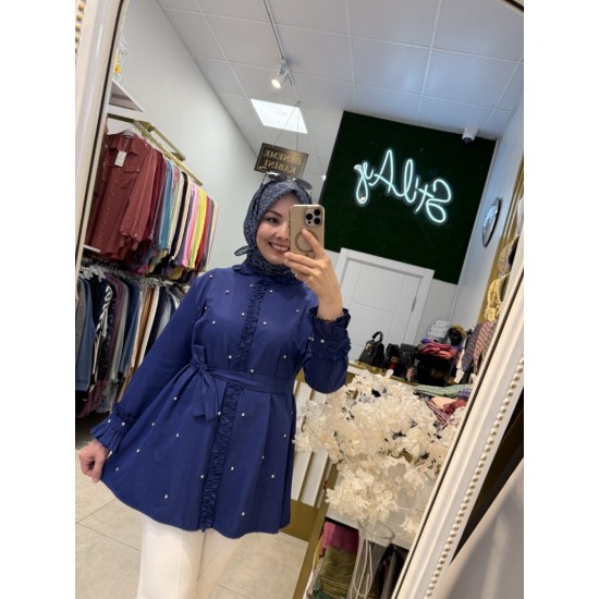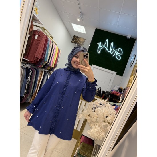 FIRFIR DETAYLI TAŞLI GÖMLEK LACİVERT