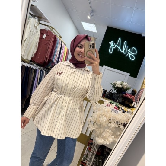 Kadın Poplin Kuşaklı Çizgili Gömlek – Şık ve Modern
