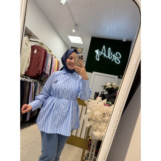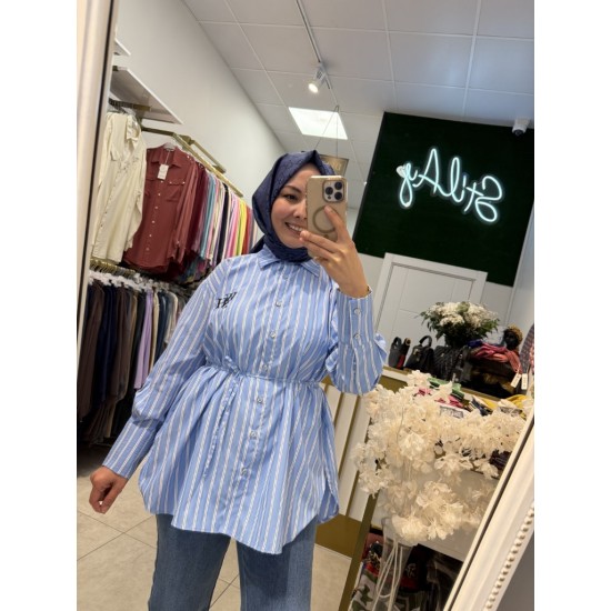 Şıklığı ve rahatlığı bir araya getiren Kadın Poplin Kuşaklı Çizgili Gömlek, klasik çizgili deseni ve ince detaylarıyla dikkat çekiyor. İnce poplin kumaşı, hafif ve nefes alabilen yapısıyla gün boyu konfor sunar. Bel kısmındaki kuşak detayı ile vücuda oturan zarif bir siluet oluşturur. Günlük kombinlerden ofis şıklığına kadar farklı tarzlarla uyum sağlayan bu model, dolabınızın vazgeçilmez parçalarından biri olmaya aday!