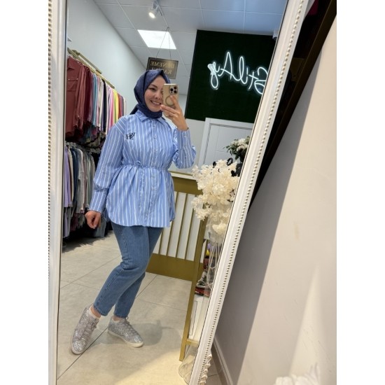 Kadın Poplin Kuşaklı Çizgili Gömlek – Şık ve Modern
